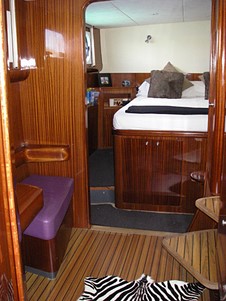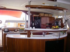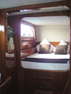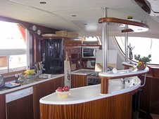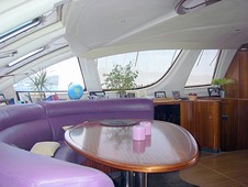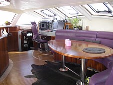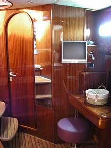 La table à carte intègre tous les instruments de navigation électroniques modernes. L’énergie du bord est fournie par 700 ampères en 24 Volts, des panneaux solaires et par le groupe électrogène.